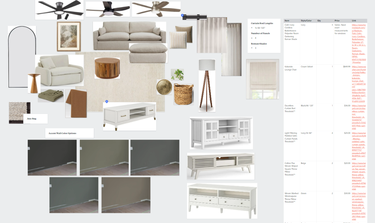Shop-the-Room Lists — Click-to-buy with cost, links, and backups.